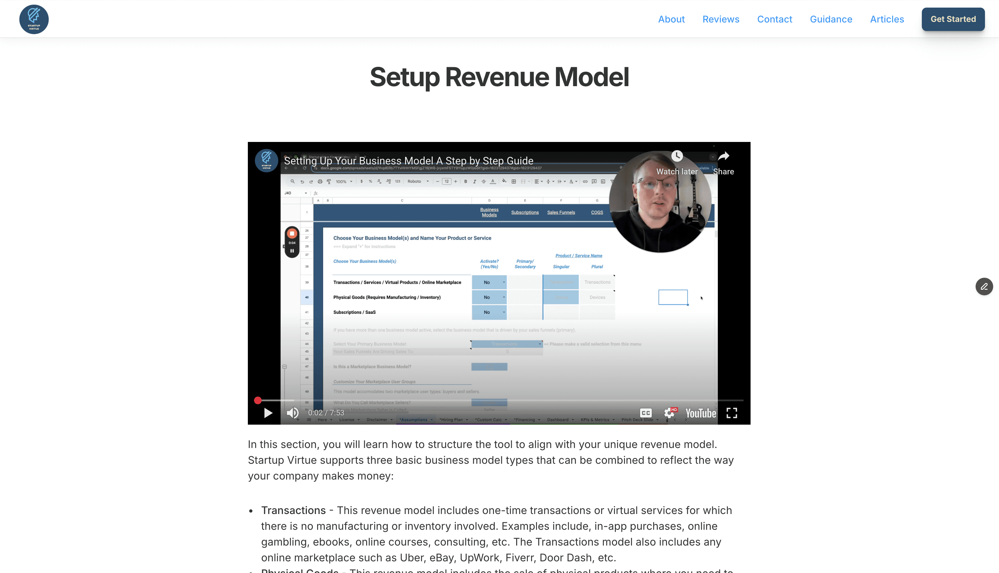 The Startup Virtue template is easy to follow and very comprehensive. We received compliments from investors for its completeness and level of detail. Post-raise, we will use this model to help run the business and will likely engage Roger again to fine-tune and optimize it. I highly recommend Startup Virtue to any business owner.